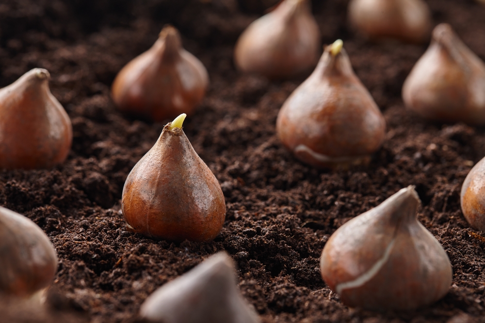 Börja med att rensa bort ogräs, rötter och större stenar. Gräv sedan ett planteringsdike eller individuella hål som är cirka tre gånger lökarna höjd. Blanda den uppgrävda jorden med kompost innan du placerar lökarna med spetsen uppåt. Fyll igen och banka lätt för att undvika luftfickor.